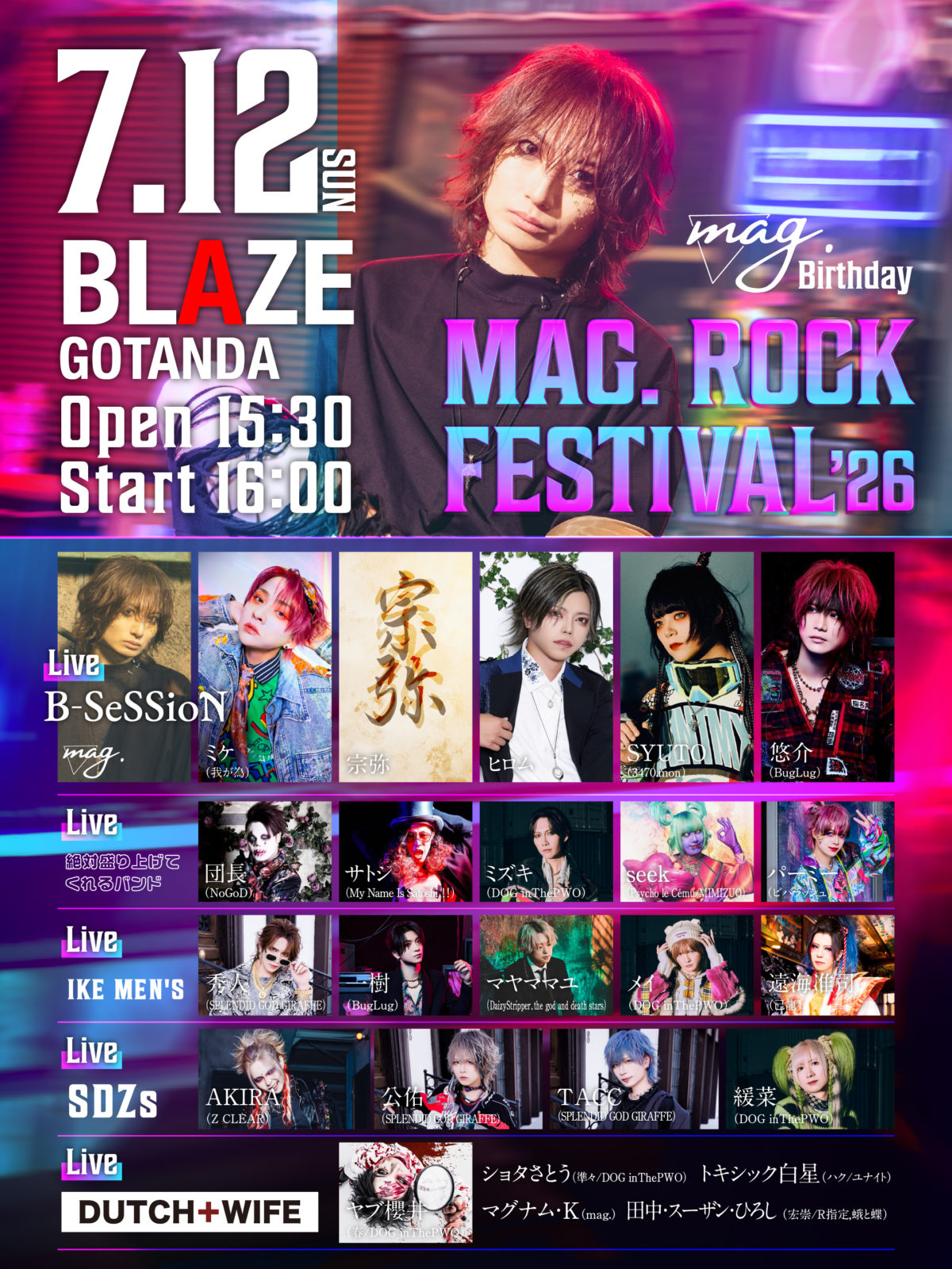 団長 (NoGoD) / サトシ (My Name Is Satoshi ‼) / ミズキ (DOG inThePWO) / seek (Psycho le Cému / MIMIZUQ) / パーミー (ビバラッシュ)